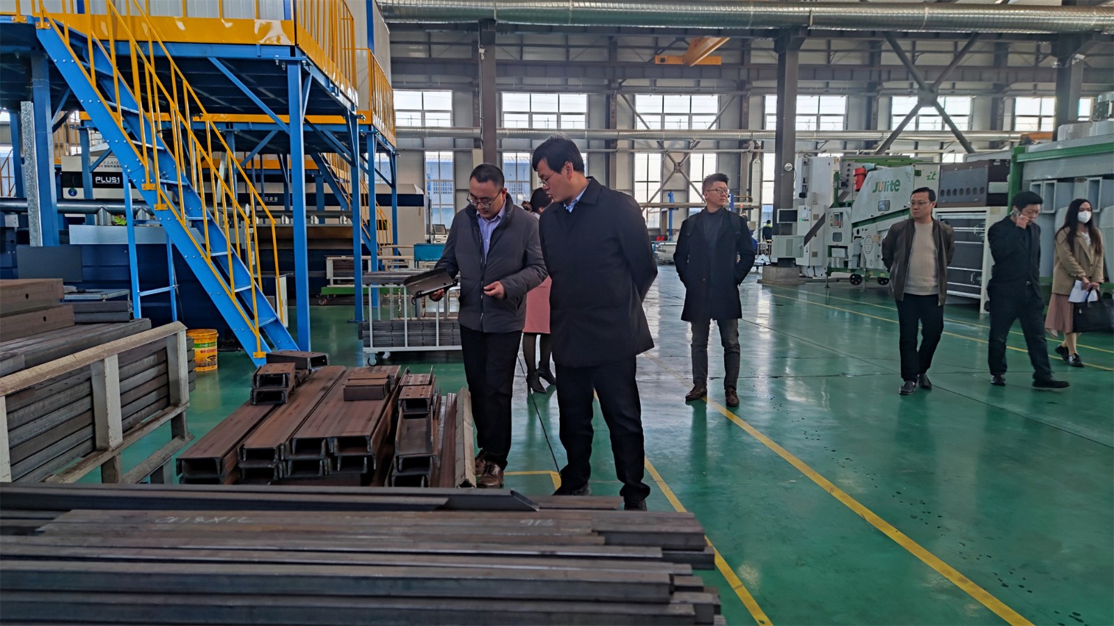 在公司1號生產(chǎn)車間,高總經(jīng)理向尹處長重點講解了聚力特生產(chǎn)線的流程與技術(shù)優(yōu)勢:通過數(shù)控激光切割機(jī)、全自動折彎機(jī)、智能焊接機(jī)器人和靜電噴涂生產(chǎn)線,實現(xiàn)了高自動化、高精度、高效率生產(chǎn),保證了產(chǎn)品質(zhì)量穩(wěn)定、交付及時和客戶的滿意。