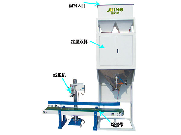 設定包裝范圍后,物料由給料機構(gòu)加入稱量斗,控制器收到傳感器的重量信號后,按預先設定的程序值進行控制,開啟加料門進行給料;當達到設定的范圍,給料機構(gòu)停止給料,開始另一個秤體的給料。自動振袋后,觸動行程開關,物料袋自動松開落入輸送帶上,被送到縫包機完成縫包。
