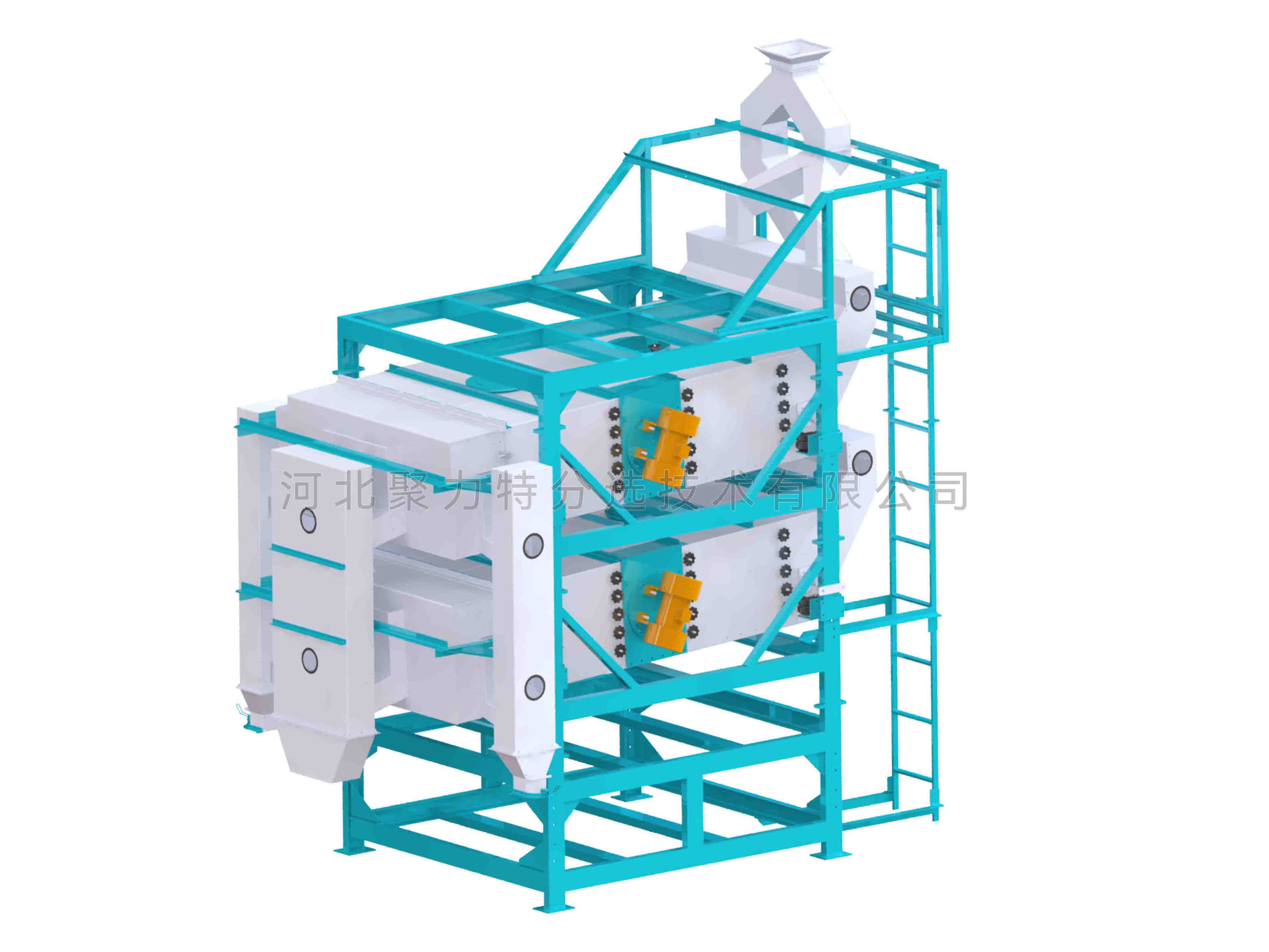 5XFJ-20AS 振動(dòng)分級(jí)篩物料經(jīng)過(guò)三通分流至上下兩個(gè)篩箱,進(jìn)入篩箱后通過(guò)分料裝置將糧食再次分為兩份,在一個(gè)大篩箱中的兩個(gè)小篩箱內(nèi)同時(shí)加工,一臺(tái)設(shè)備等同于原來(lái)4臺(tái)設(shè)備,使產(chǎn)量和效率是原來(lái)的3一4倍.